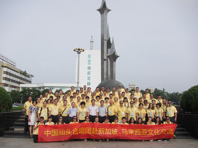 为庆祝中新建交25周年,汕头市政协港澳台侨外事委员会林小斌主任率汕头市合唱团一行80多人,应邀于9月30日至10月5日赴新加坡和马来西亚进行文化交流演出。合唱团分别在新加坡维多利亚音乐厅和马来西亚柔佛州为侨胞和当地文艺界、民众献演。