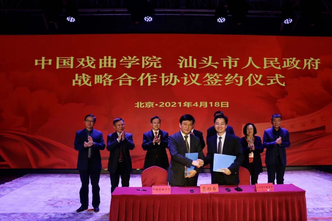 北京市教育工委常务副书记郑吉春,中国戏曲学院党委书记李必友、院长尹晓东,广东省文化和旅游厅副厅长杨树,汕头市领导谢泽生、林晓湧出席签约仪式。