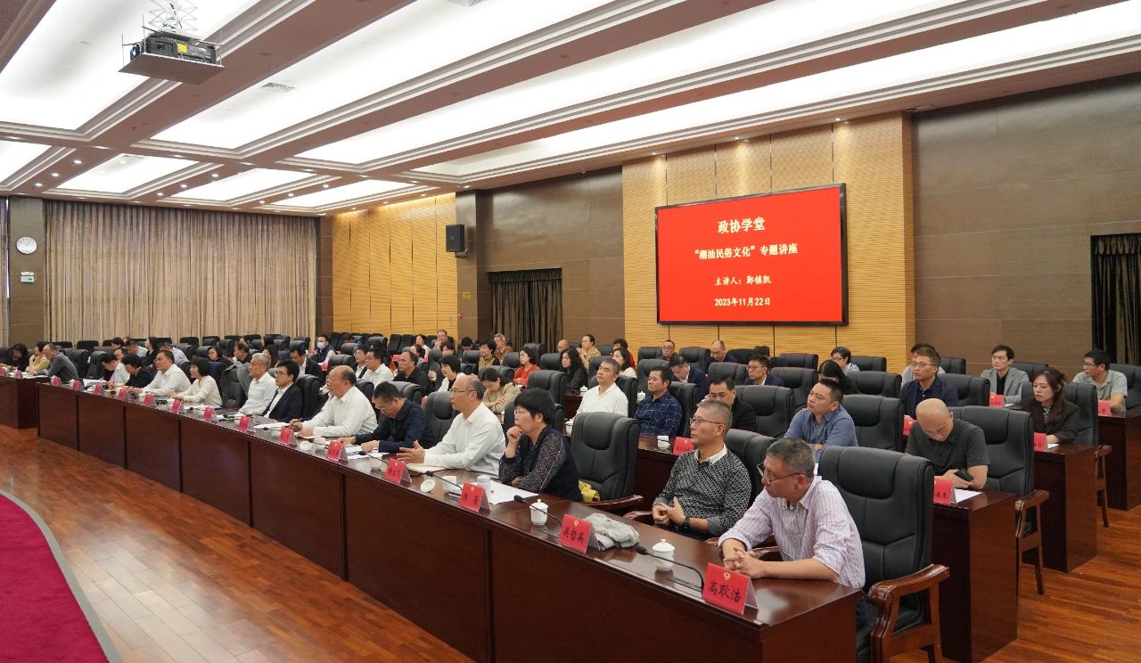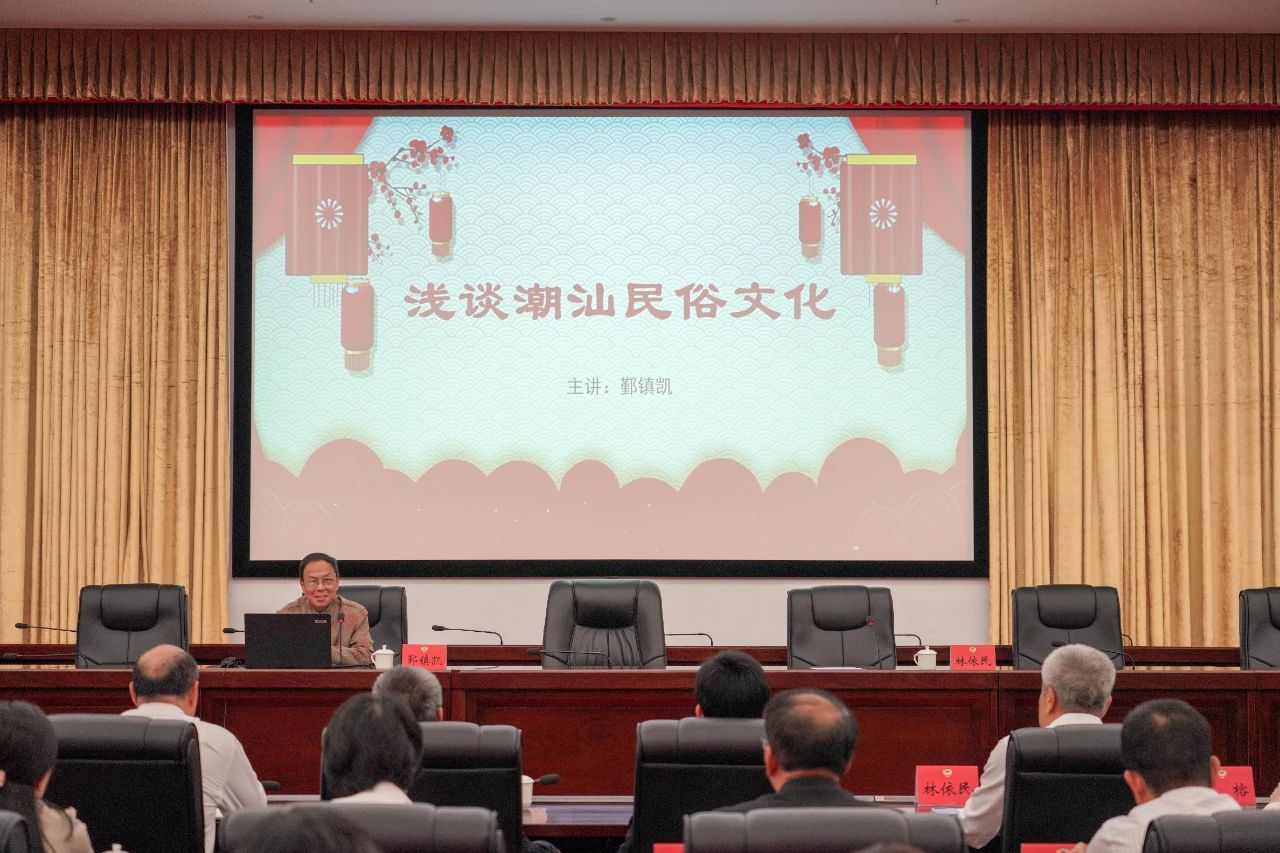 为深入学习习近平总书记关于加强历史文化遗产保护的重要论述精神,提升政协委员、机关干部的知识水平和履职能力,11月22日,市政协举办政协学堂,邀请潮汕文化学者鄞镇凯作“潮汕民俗文化”专题讲座。市政协主席邱奕辉出席活动。